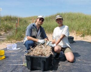 Léonard Huet-Doyle et Rachelle Gagnon d’Attention FragÎles au triage des déchets de plage. (Photo : CFIM)