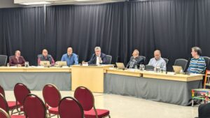 La directrice des finances Danielle Hubert, le maire Antonin Valiquette et le directeur général par intérim Jean Hubert. Il s’agit vraisemblablement d’un dernier budget municipal pour Mme Hubert, qui prévoit prendre sa retraite au cours de l’année. (photo: CFIM)