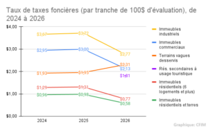 Avec le budget présenté mardi soir pour l’année 2026, les élus ont souhaité répondre aux propriétaires des 169 édifices concernés qui demandaient un taux de taxe distinct depuis bientôt deux ans. Ceux-ci avaient subi une hausse significative en 2023 après que leurs édifices, autrefois taxés au taux résidentiel, aient été reclassés dans la catégorie commerciale à la suite de la révision, l’année précédente, de la Loi sur l’hébergement touristique et de la Loi sur la fiscalité des municipalités.