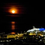 une lune orangée enveloppe Cap-aux-Meules… ajoutant une touche mystérieuse au début...