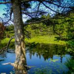 éclat d’été sur paysage d’automne… le lac reflète ce que le soleil lui donne.