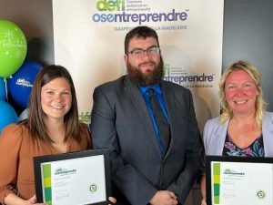 Marie-Pier Cormier (Domestica & Co), Samuel Richard (représentant de la Communauté maritime, qui est partenaire du Défi) et Cindy Poirier (Cindyhook Sports Aventures) (photo: Défi Osentreprendre)