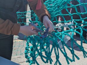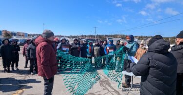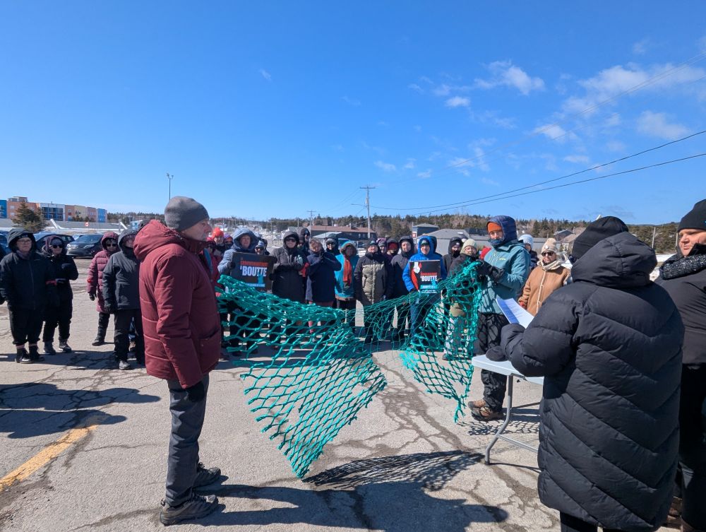 Tour à tour, les représentants des organismes présents ont défait symboliquement un maillon du filet de pêche pour représenter les limites du filet social.