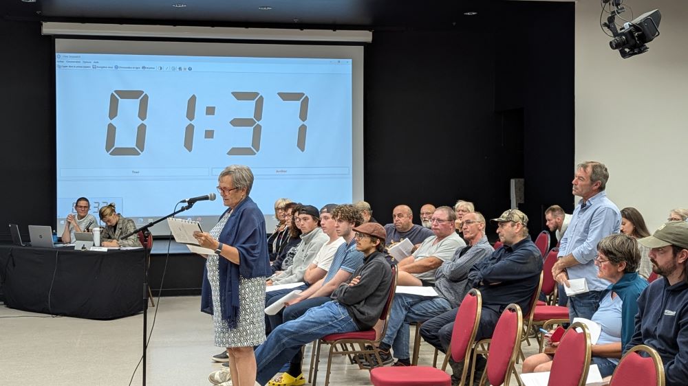 Une minuterie est dorénavant affichée durant les périodes de question; un total de 11 interventions ont été faites au micro au cours de la soirée (photo: CFIM)