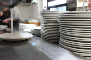 Cinq services multipliés par 160 convives, ça donne du travail à l’équipe de la plonge! (Photo: CFIM)