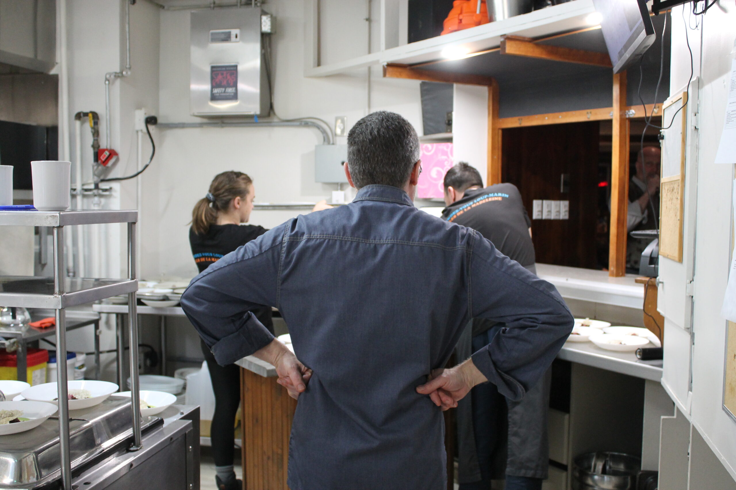Je le retrouve samedi en cuisine, entouré de Sonia Bichet, Yannick Ouellet, Julien Renaud-Tremblay et Jacques Leblanc à peaufiner les derniers détails.