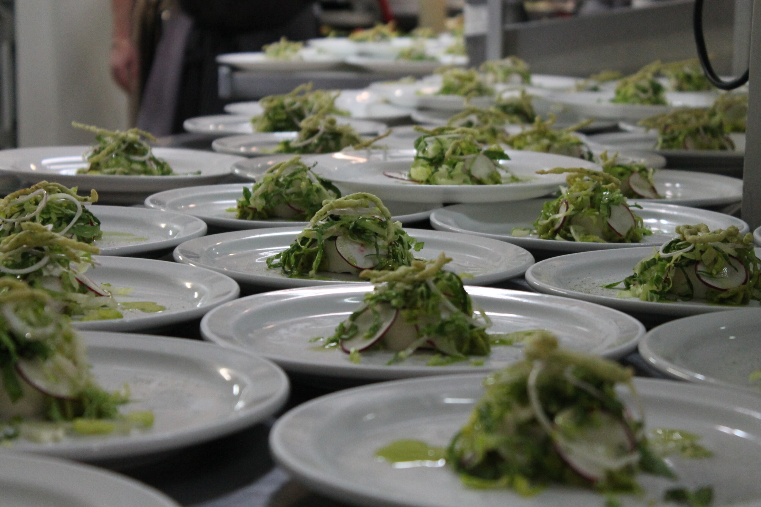 Cinq services multipliés par 160 convives, ça donne du travail à l’équipe de la plonge! (Photo: CFIM)