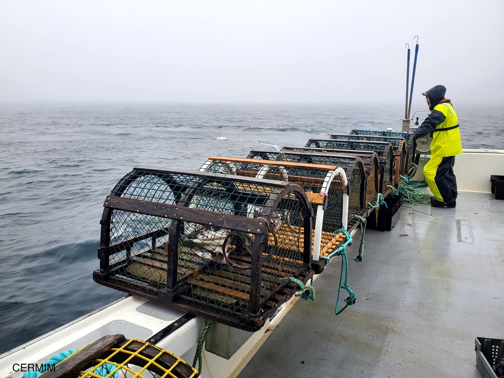 Deux cages avec les arceaux blancs ont été testés lors de la saison de pêche au homard (photo: CERMIM)
