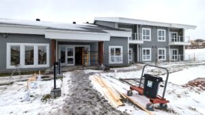 La construction de l’édifice est à toutes fins pratiques complétée, alors que les ouvriers s’affairent à terminer la finition (photo: CFIM)