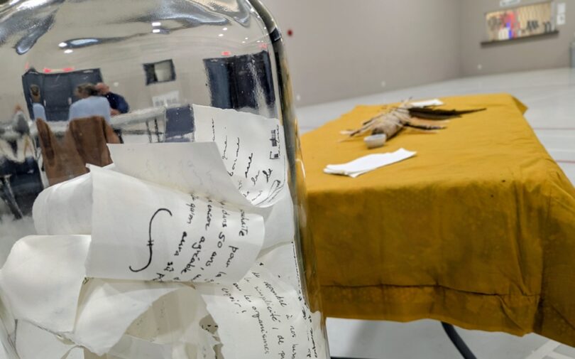 L’artiste et médiatrice culturelle a élaboré un projet d’écriture et d’art sonore qui prend la forme d’une bouteille à la mer. L’objet sert à la fois d’œuvre collective et de capsule temporelle, explique-t-elle.