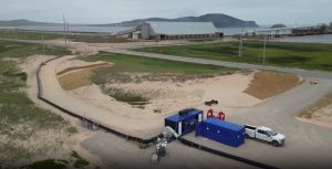 Une station de pompage tire le sable du navire et l’achemine jusqu’au site d’entreposage (crédit photo: L’île imagin’air)