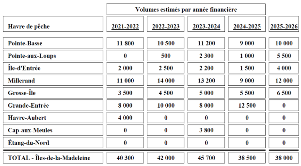 Le ministère prévoit que la quantité totale de sédiments dragués atteindra 38.000 mètres cubes pour l’année en cours, dont plus de la moitié à Millerand et Pointe-Basse. Selon les informations du MPO, cela inclut des travaux supplémentaires qui devront être exécutés au cours des prochaines semaines, mais qui n’affecteront pas les activités de pêche.