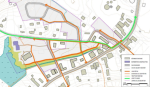 En orange, le tracé préliminaire du sentier pour les piétons et en vert, la voie cyclable. À noter que le trajet serait uniquement aménagé sur le chemin Gaudet actuel (source: MunÎles)