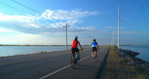 Route avec cyclistes – capture d’écran Tourisme Îles-de-la-Madeleine