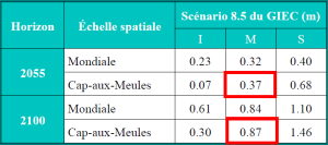 Les projections de la hausse du niveau marin du GIEC (source: MunÎles)