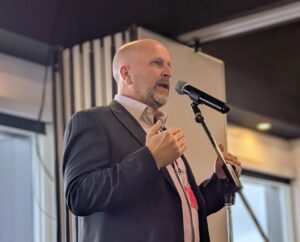 Le directeur de l’ACPIQ, Gil Thériault, a pris le micro à une dizaine de reprises au cours des délibérations. L’ACPIQ est l’un des co-organisateurs de l’événement (photo: CFIM)