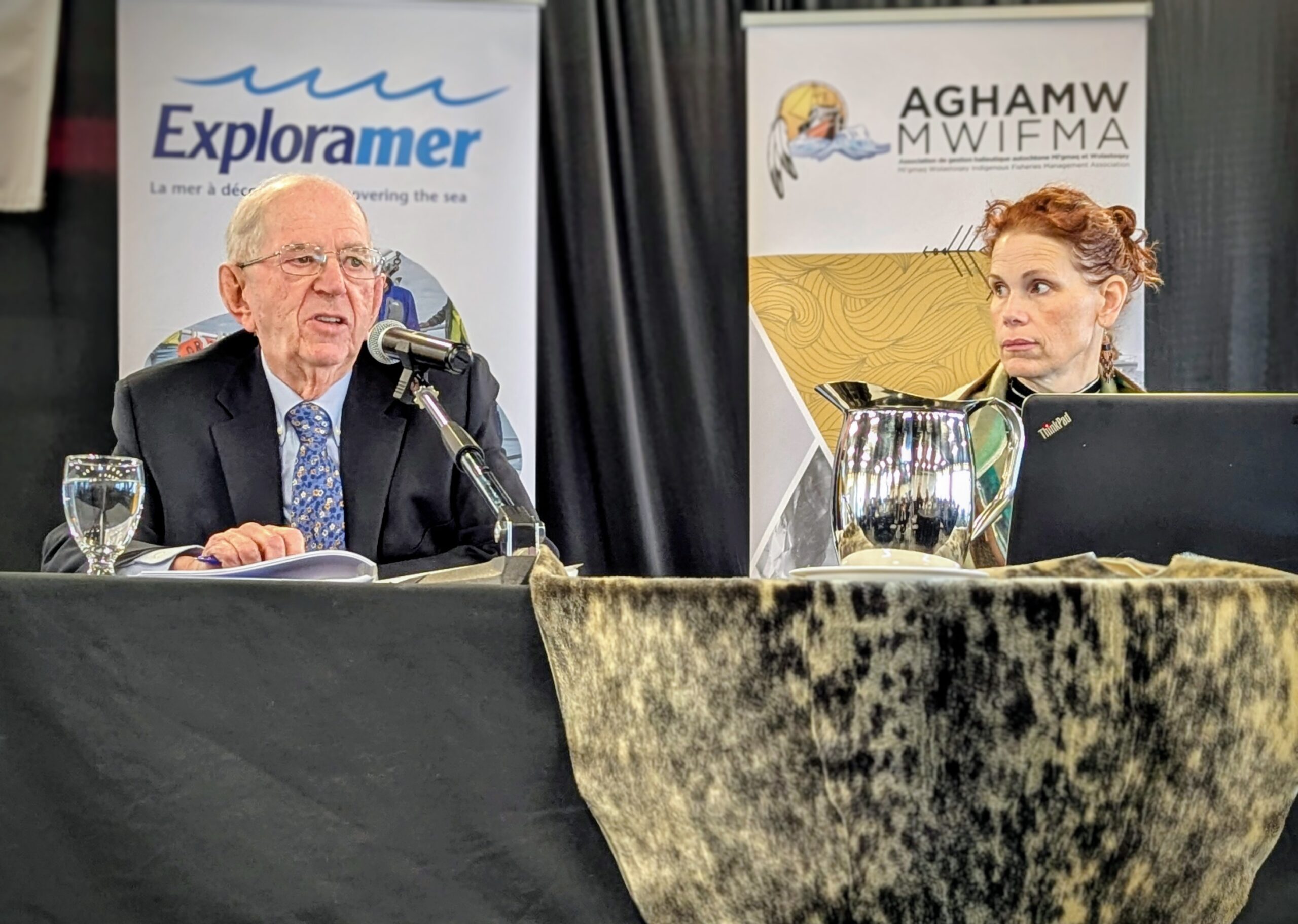Le juge retraité Robert Pidgeon a agi comme meneur de cérémonie, du haut de ses 80 ans, en compagnie de Marilou Vanier, de l’AMIK (photo: CFIM)