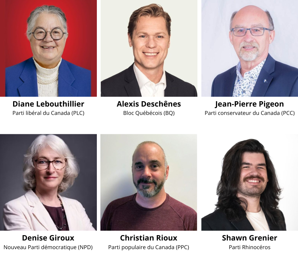 Le conservateur Jean-Pierre Pigeon tente lui aussi sa chance pour une quatrième fois, alors que le Parti populaire du Canada (PPC) est représenté par le même candidat qu’en 2021, Christian Rioux.