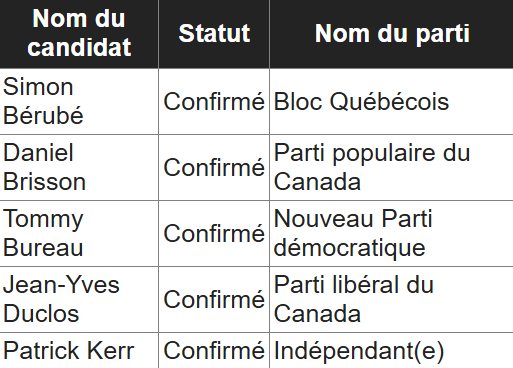Liste candidats confirmés 9 avril Québec-Centre – Élections Canada