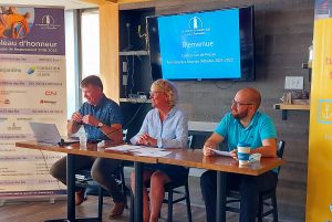 La cérémonie à petite échelle réunissait le responsable du comité des programmes de la fondation, Denis Richard, la présidente de la fondation, Line Cormier, et le maire suppléant, Jean-Philippe Déraspe
