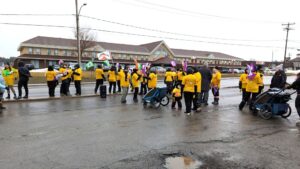 Une cinquantaine de travailleuses et travailleurs en grève ont bravé la météo, mardi, afin de manifester devant la mairie (photo: CFIM)