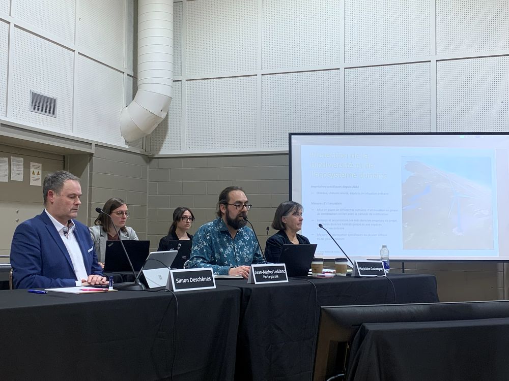 It took almost three hours for the commission to address the 25 questions that a dozen of citizens had for the developer, Nutrinor Gilbert Énergies, as well as for the other parties involved, such as the Ministry of Environment, the Maritime Community, and Hydro-Québec.