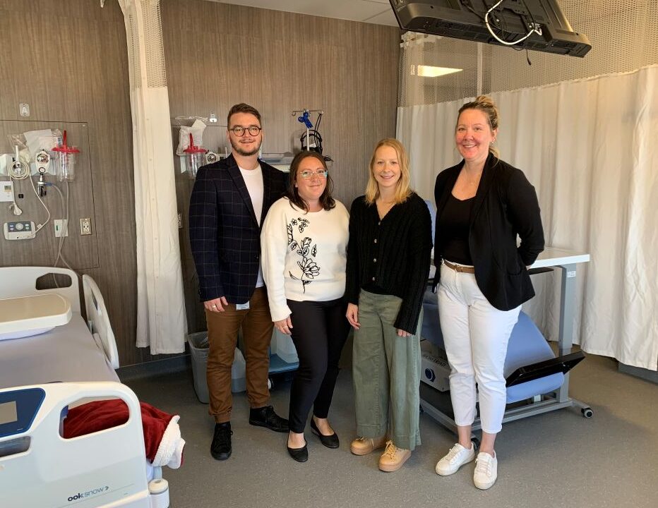 De gauche à droite: le directeur de la Fondation Santé de l’Archipel, Pierre-Philippe Poirier, la cheffe de section, Marie-Audrey Duclos, l’infirmière en hémodialyse, Dominique Boudreau et l’adjointe à la direction des soins infirmiers, Judith Arseneault. (Photo: CFIM)