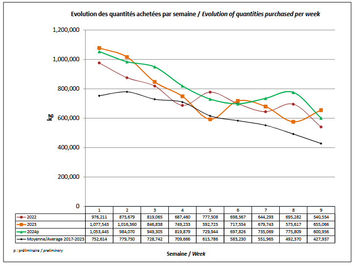 Évolution quantités homard par semaine – MPO