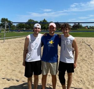 Les trois membres de la délégation régionale de volleyball de plage sous le soleil du Parc Beauséjour, à Rimouski. Andy Turbide, Étienne Gagné et Noah Poirier. (Source: Noah Poirier)