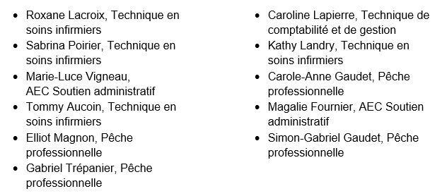 Récipiendaires bourses Madeli-aide Réussir aux Îles – tableau CFIM