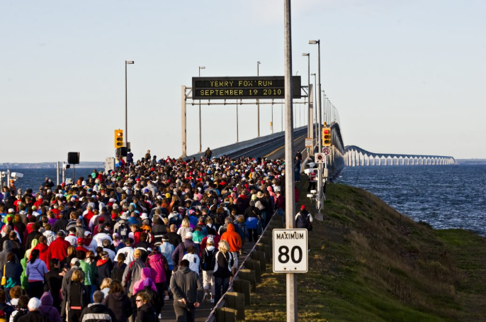 D’est en ouest du pays, la Course Terry Fox rend hommage à l’épopée de l’athlète canadien qui, en 1980, entreprend de parcourir le pays alors qu’il porte une jambe artificielle.