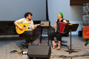 Les musiciens Fred Pauze et Sonia Painchaud ont agrémenté l’événement avec un accompagnement musical de jazz manouche (photo: CFIM)