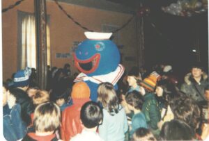 La mascotte bonhomme du Decker Boy, lors d’une fête à la salle paroissiale de Fatima (photo: courtoisie David Noël)