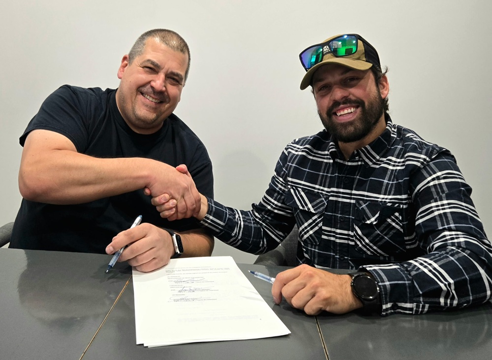 Après avoir signé l’acte de vente, David Noël et Jean-Sam Bénard sont allés jeter un coup d’oeil sur les recettes secrètes du restaurant (photo: courtoisie Jean-Sam Bénard)