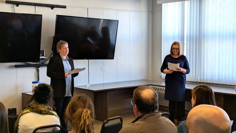 La présidente du C.A., Marie-France Cummings, et Rachelle Leblanc lors du lancement du guide, en présence des médias et des partenaires (photo: CFIM)