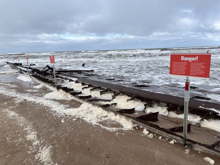 L’épave est soumise aux phénomènes d’ensablement et de désensablement. Les pans à découvert peuvent être coupants (photo: CFIM)