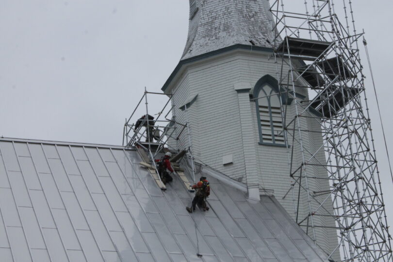 Bien que la réfection actuelle de la flèche soit subventionnée à 80% par le Conseil du patrimoine religieux du Québec, aucun montant n’est encore à l’horizon pour réparer la toiture de la sacristie, s’inquiète Mme Deschênes.