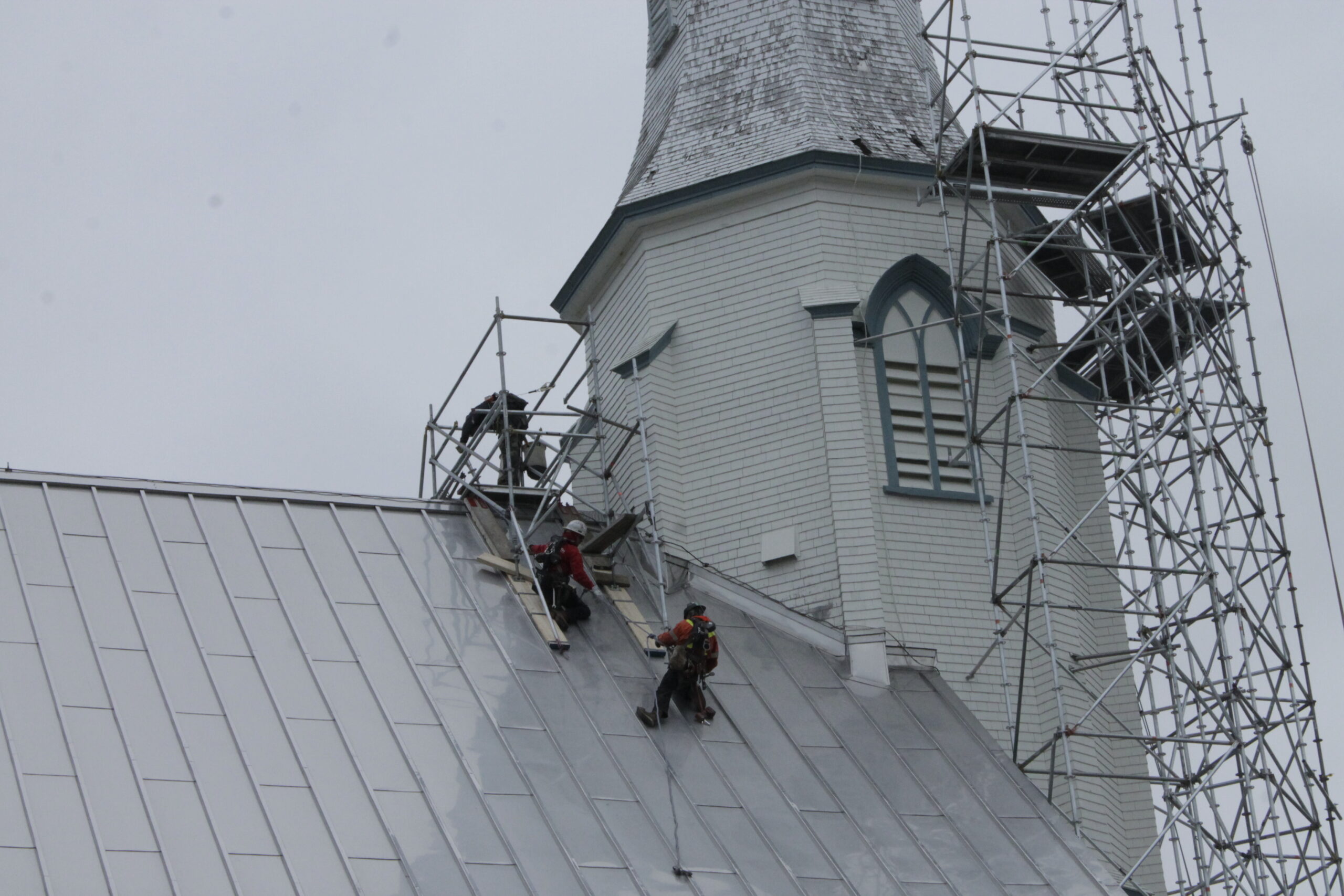 Un projet qui était longuement attendu, la pourriture du toit du clocher ayant été découverte en 2018, alors qu’on voulait la repeindre.