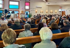 L’église de Grande-Entrée était pleine à craquer pour le dévoilement du projet (photo: page Facebook La mer sur un plateau)
