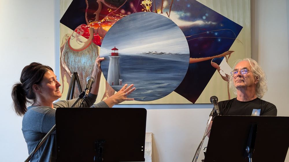 L’artiste Caroline Lapierre a dévoilé douze tableaux ronds ayant servi à illustrer le calendrier 2025 mis en vente par la Corporation (photo: CFIM)