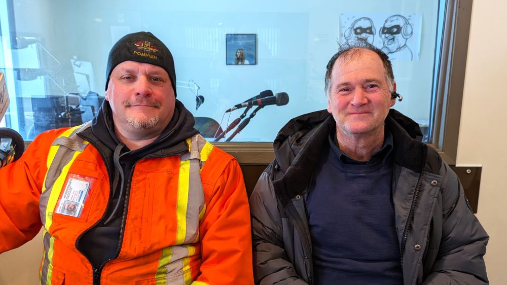 Le porte-parole des pompiers, Stéphane Poirier, et le vice-président du Syndicat des employés municipaux des Îles, Gilles Turbide (photo: CFIM)