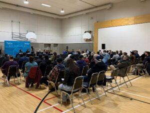 Une trentaine de personnes étaient présentes pour le début de l’audience publique du BAPE à Grosse-Île mardi soir. (Photo: CFIM)
