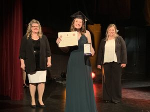 Les directrices de la polyvalente, Karen Renaud (gauche) et Annick Nadeau (droite) en compagnie de la récipiendaire de la médaille du lieutenant-gouverneur du Québec, Frédérique Éloquin