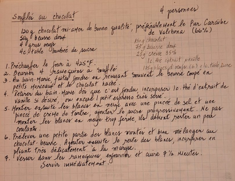 Le soufflé au chocolat d’Hélène … Miam !