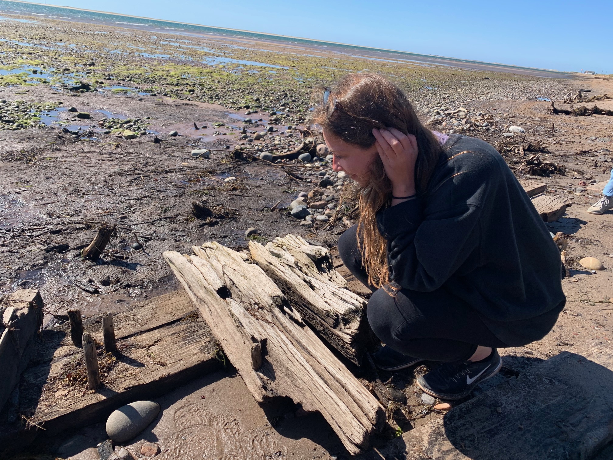 La conservatrice du Musée de la mer, Natacha Joannis examine le bois d’épave