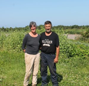 Anne-Sophie Devanne et Roberto Chevarie, des Champs Marins, dans leur champs aux Bois-Brûlés (source : CFIM)