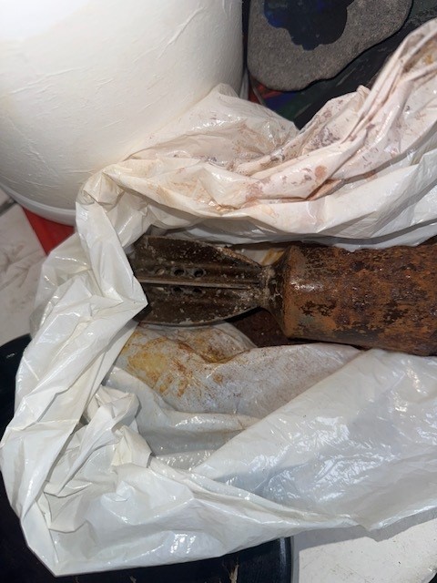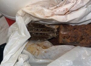 Malgré la rouille, les militaires ont pu identifier la munition. Il s’agirait d’un mortier de 2 pouces hautement explosif de la Deuxième Guerre mondiale (photo: courtoisie Dylan Venator)