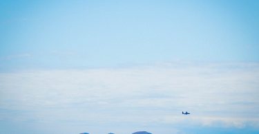 en survolant les buttes arrondies de l’Île d’Entrée… un avion de reconnaissance...
