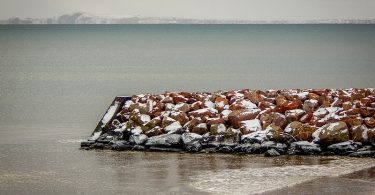 figée dans le temps, le sable ou la glace… du Corfu, l’épave est devenue la plage.