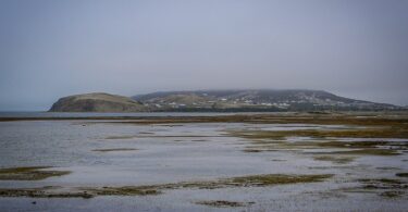 Grosse-Île Sud émergeant du blanc brouillard… avec ses grands plans d’eau emplis...